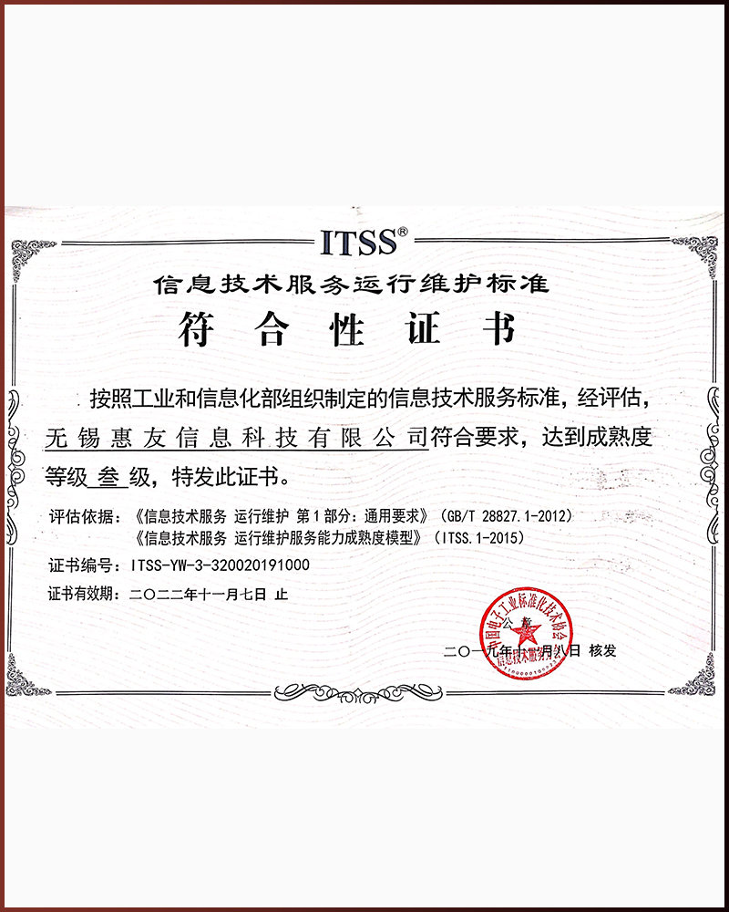 信息技術服務運行維護標準符合性證書