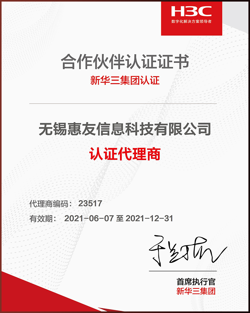 新華三集團合作伙伴認證證書