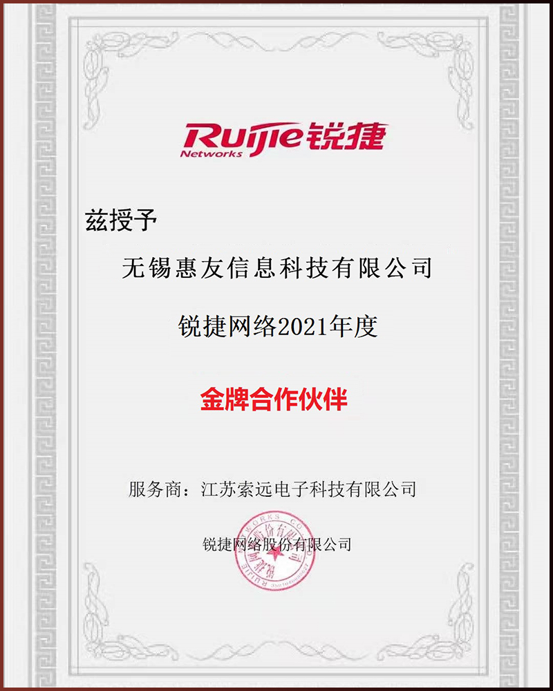 銳捷網(wǎng)絡2021年度金牌合作伙伴