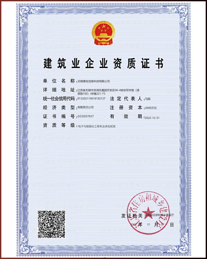 智能化工程專業(yè)承包資質證書
